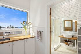 The laundry echoes the kitchen's style with a matching wooden benchtop, while to the left is a separate toilet and to the right, a tiled shower and vanity room. Children will be fighting over who gets the loft bedroom, while the other two are generous doubles with the primary having two built-in wardrobes.