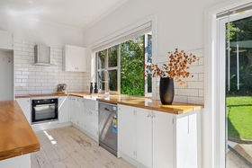 Step inside and you'll appreciate how character and contemporary finesse come together. Timber floors flow from the entrance through to the kitchen, seamlessly linking the spaces. The kitchen's thoughtful design combines style with practicality, featuring bi-fold windows that open to the private rear courtyard - perfect for when entertaining outdoors or keeping an eye on the action outside. From here, the dining and living areas connect naturally, creating a warm sense of togetherness.